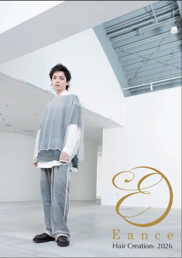 | Hair Creation―2026「Eance」(エアンス)は、 自分らしいスタイルを大切にするオシャレ感度の高いレディス&メンズに向けたヘアスタイルです。 セイムレイヤーをベースに、ドレスダウンしたテイストを表現したヘアデザインに、 メンズはピンパーマでお客さまに合わせたオーダーメイド感覚のパーマを合わせたヘアスタイルです。 |